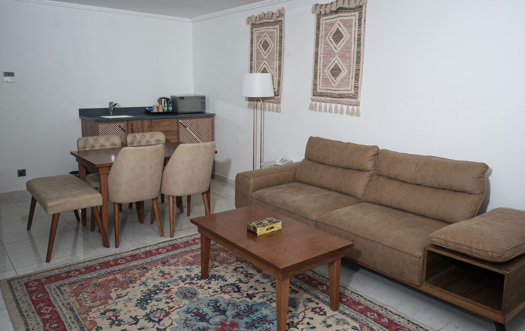 This Queen Room in a 30-square-meter area with a sitting room offers an exquisite blend of comfort and style. The spacious bed features a premium mattress with plush bedding, high-thread-count linens, and an array of soft pillows to ensure a restful night’s sleep. The headboard is often elegantly upholstered or features a modern, polished wooden finish, adding a touch of sophistication to the room’s ambience.